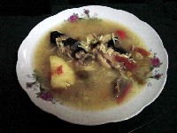 Curacao1 yauna 1 siboyo 1 promenton 1 tomati 1 taki di jerba di sopi 1 kuchara di kome kuné di konsomé 1 bouillon 1 envelop di sopi 2 batata 2 maishi kortá na dou dou 1 kopi aletria 1 theelepel di konofló na puiru 3 pa 5 lamoenchi